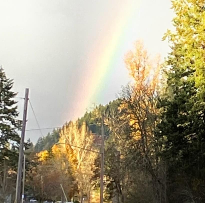 The next day I didn’t make it into the woods, but I still strolled around the neighborhood. I saw a beautiful rainbow and spectacular skies. It rained, stopped raining, and then rained again.